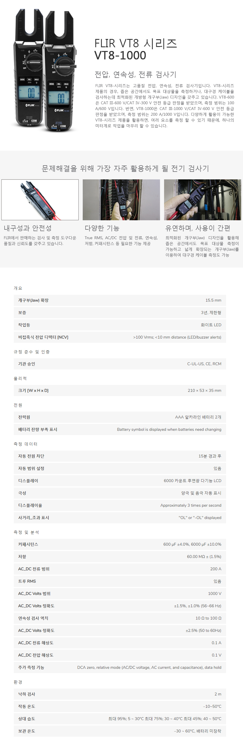 이미지 확대보기FLIR VT8-1000 디지털클램프미터