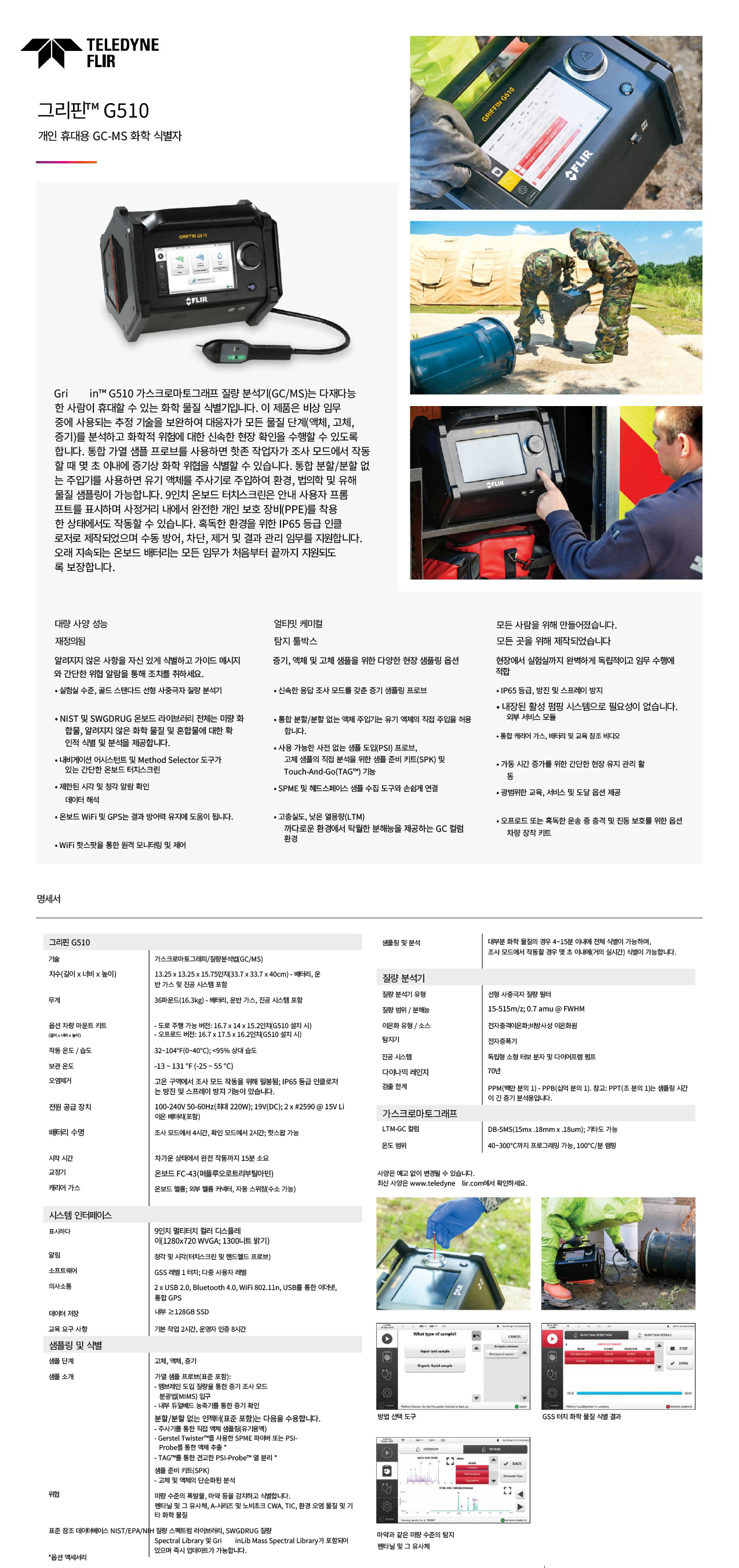 휴대용 Griffin™ G510 GC/MS(가스 크로마토그래프 질량분광계)를 통해 대응 인력은 몇 분 안에 현장에서 화학물질을 식별할 수 있습니다.